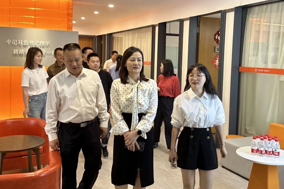 长沙县委常委、县委宣传部部长杨溢与长沙县湘龙街道党工委书记喻孟华一行来到湘龙文创园参观考察