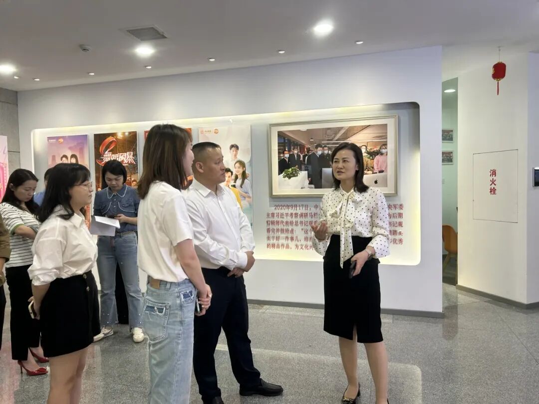 随后前往后期综艺节目制作中心天合智造以及视觉创意文化品牌天合元创进行参观,天合智造人力与品牌总监易孟莉向领导们介绍了天合成熟的后期全流程体系。