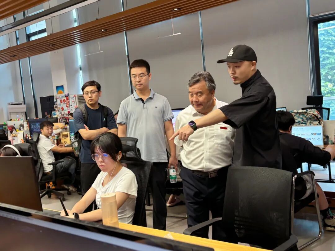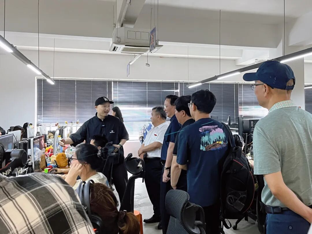 在毛友权的带领下,学校领导们首先参观了三楼天合智造内容制作中心和天合元创视觉设计板块。参观过程中,毛友权为大家介绍了正在火热制作的综艺项目,还展示了各工种之间的高效协作,以及公司斥资千万打造的、专为4K节目生产设计的高性能服务器机房。机房内的先进设备和技术让参观的老师们印象深刻,赢得连连赞叹。