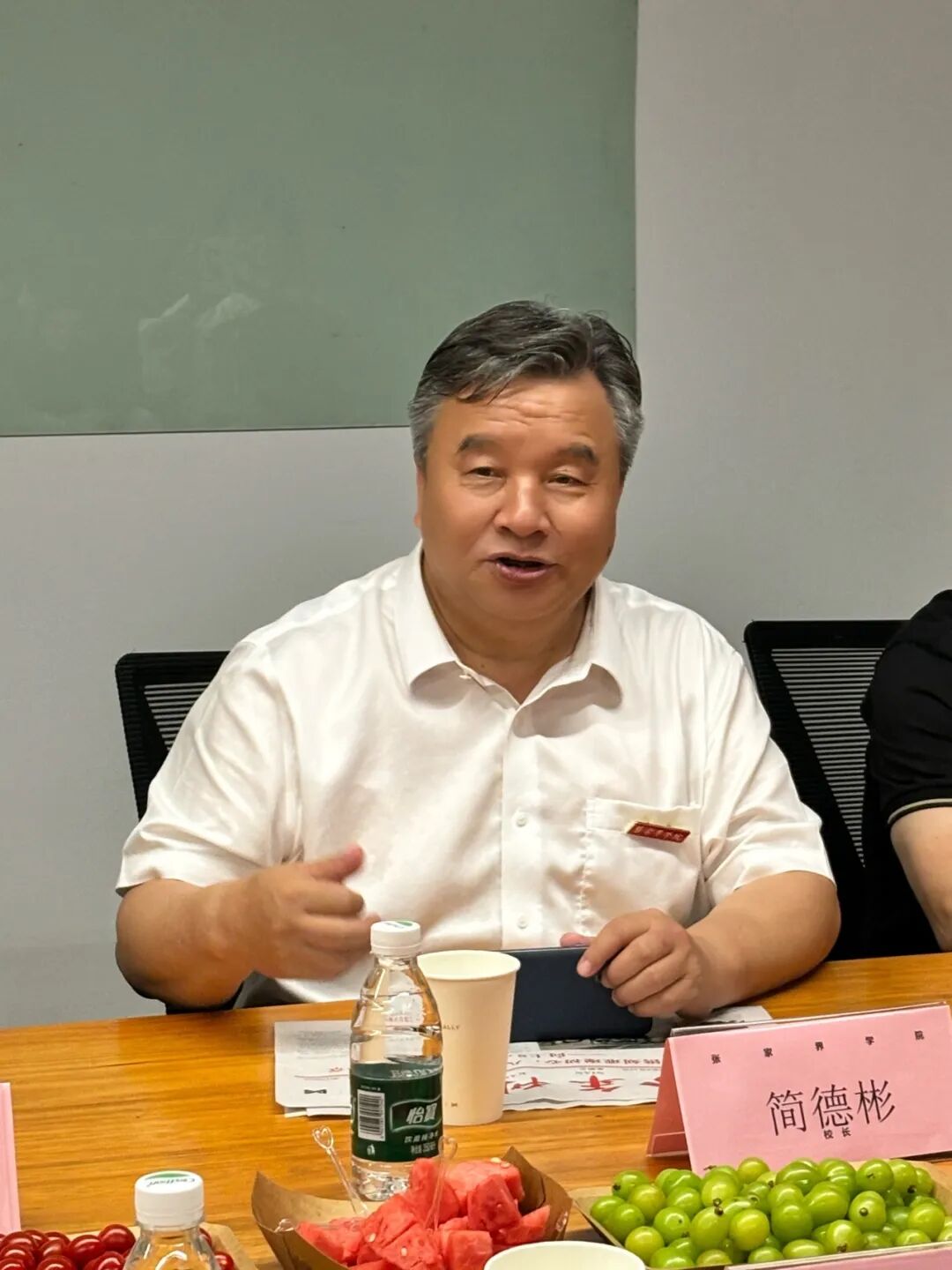 随后,简德彬校长详细介绍了学院的历史沿革、人才培养和发展规划,以及探索校企联合办学的思路与愿景。他提到,通过参观企业,他深受震撼,尤其是看到三楼直接对接市场产出,四楼专注于行业人才培养,这让他首次真切感受到产学研结合的紧密性。