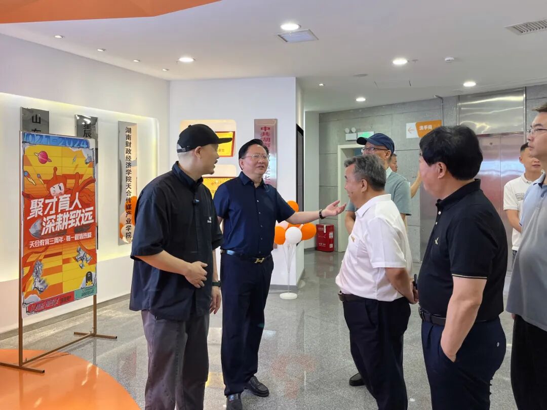 2024年6月11日,张家界学院董事长许洁、校长简德彬、经济管理学院教授罗选国、艺术学院副院长宋扬、宣传统战部部长助理李洁、经济管理学院教师瞿章明、宣传统战部教师宋程、办公室教师罗宗伟等领导莅临天合参观指导,天合家族创始人兼CEO毛友权、天合元创负责人黄黎英、及其它部门负责人热情陪同接待。