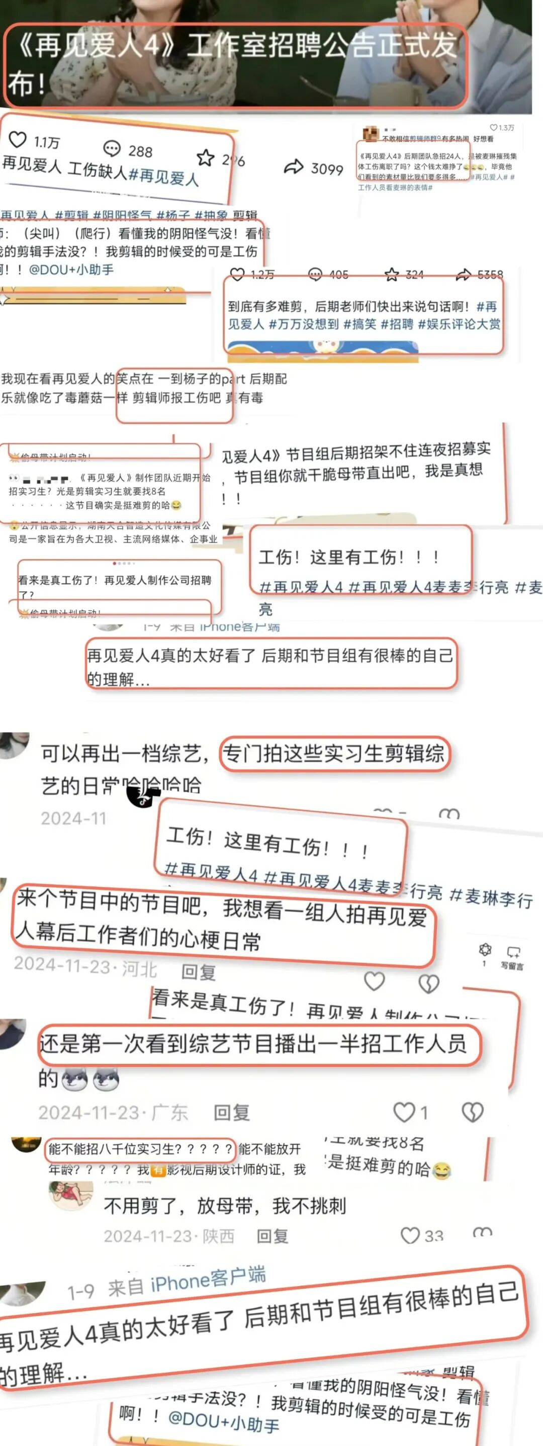 2024下半年《再见爱人》第四季,以一种让人无法拒绝的方式,闯进了大众视野,各个平台,各种热搜,网友逐帧追综,热度不断攀升。最夸张的时候,连带着后期都能顺带登顶热搜,小智菌连发个正常的人事招聘,都能爬上热搜,给小智菌整不会了。(羞涩ing,嘻嘻嘻)