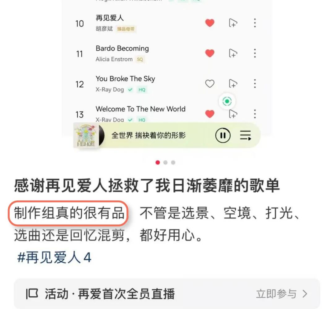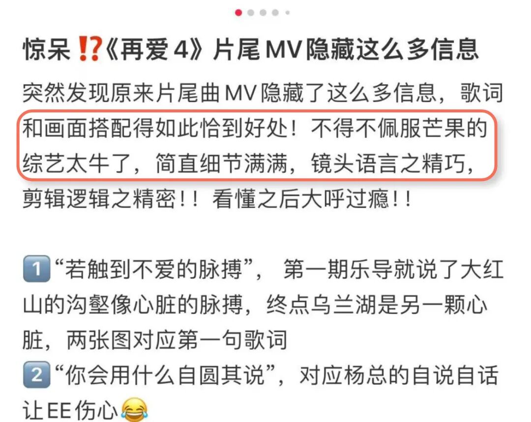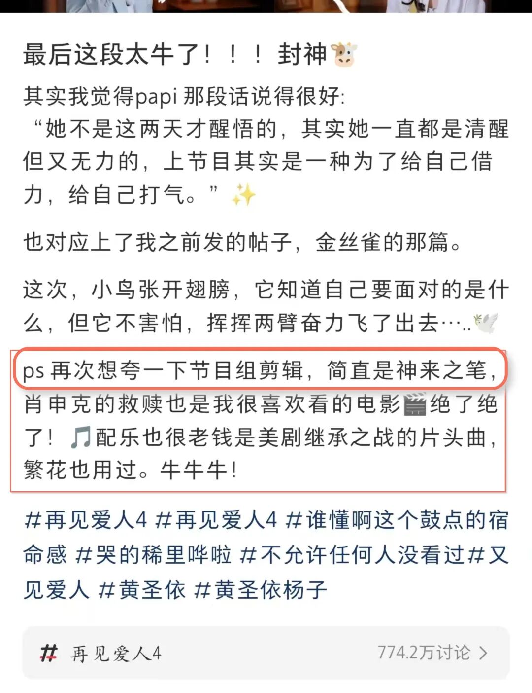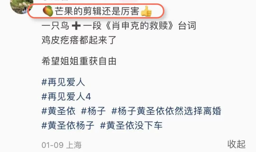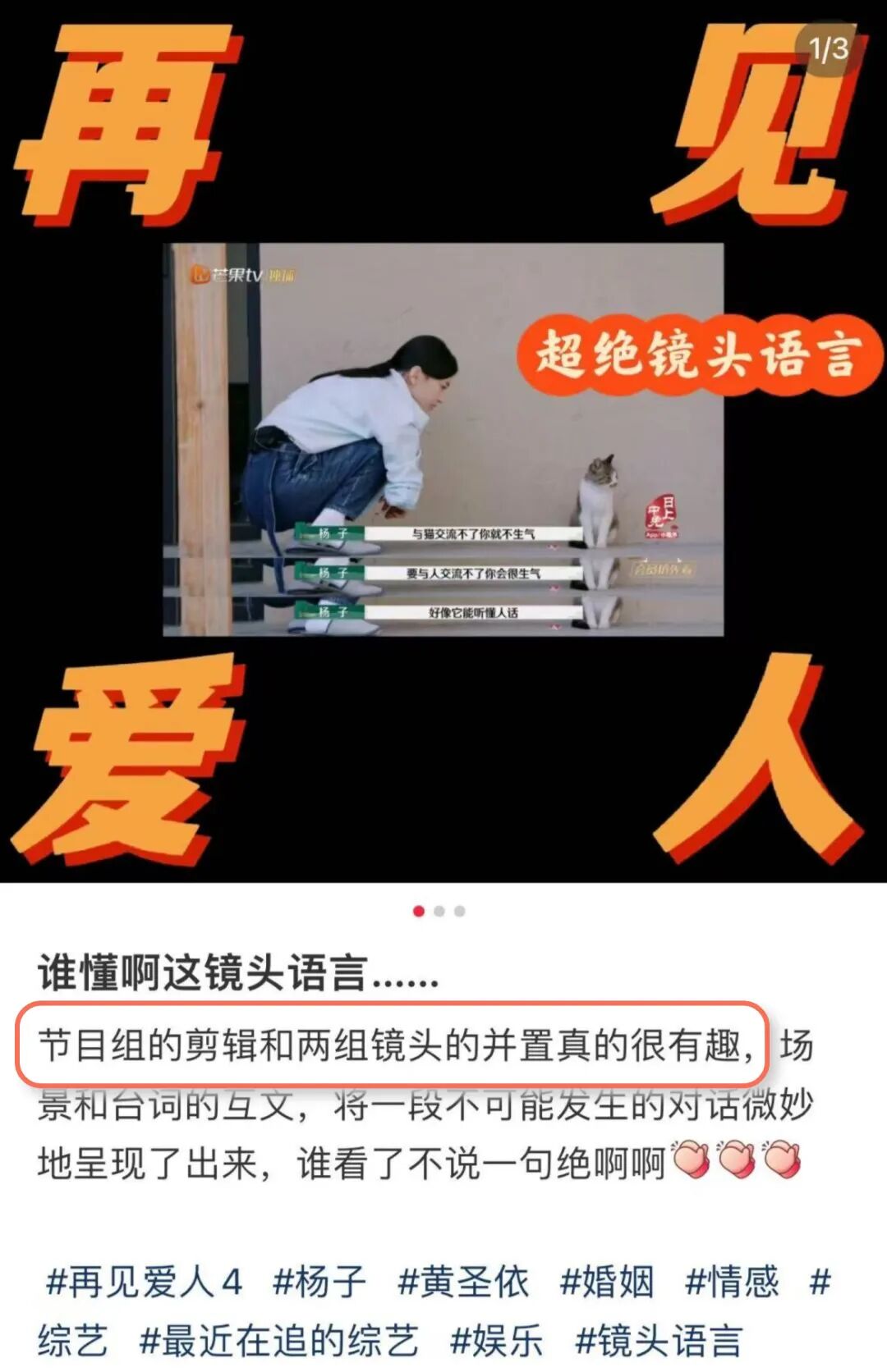 黄湘敏(剪辑):我的高光片段应该就是杨子藏手机和黄圣依杨子36问吧;最大的心得就是技术炫技剪辑是一方面,思想思维传递架构呈现是另一方面,我都需要提升。