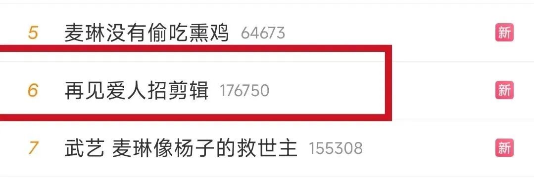 谭庆茹(剪辑):高光片段是爱人的第五期加更大家哄麦琳的片段,这个片段斩获五个热搜哈哈哈!印象深刻是每次负责人审片听到最多的话就是“松松气口、还是再换一首音乐吧”。最大的收获是挑选音乐的能力有很大的进步。